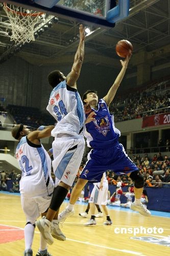 11月23日,在2008—2009賽季CBA聯賽第四輪比賽中,北京金隅隊主場戰勝天津榮鋼隊,獲得聯賽開始后的首場勝利。三連敗后的北京金隅回到主場迎接天津榮鋼的挑戰。開場后天津隊雙外援發揮出色,比分領先,但北京金隅很快適應了天津隊的打法,加強防守限制了對方外援在內線的發揮,在第四節逐漸將分差拉大,逐步奠定了勝勢,最終將比分定格在98比84。中新社發 王韶驊 攝
