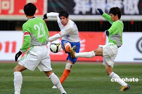 12月4日,中超全明星對(duì)抗賽在濟(jì)南打響,山東魯能(白)以6-7負(fù)于中超全明星隊(duì),2008聯(lián)賽就此落幕。 中新社發(fā) 張侃 攝