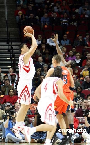 當地時間12月5日晚,姚明擔綱的休斯頓火箭以131比112戰勝金州勇士,姚明全場貢獻了賽季最高的33分,他還搶下了14個籃板,助攻5次。中新社發 歐文 攝