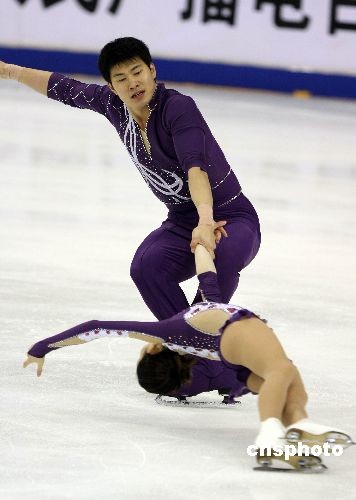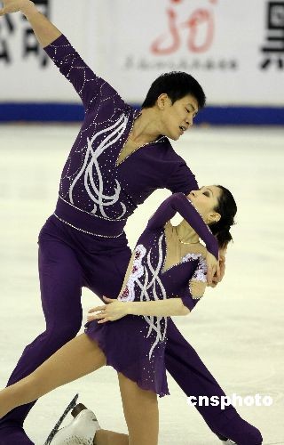 在第24屆世界大學生冬季運動會花樣滑冰雙人滑比賽中,張丹、張昊以195.32的總成績奪得冠軍,取得三連冠。中新社發 王韶驊 攝