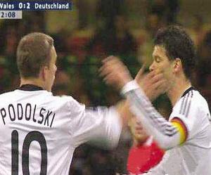 2比0,德國隊擊敗威爾士,世界杯出線形勢大好。不過勝利也不能讓所有人都開心,為德國隊首開紀錄的隊長巴拉克就很郁悶,比賽中他被隊友波多爾斯基扇了一記耳光。“他當時不是很認同我的看法,但在球場上就該聽從我的意見,而不是用手來攻擊我。”賽后巴拉克憤怒地說。