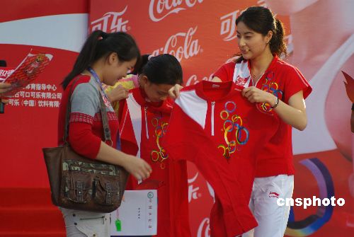 11月11日下午,奧運冠軍郭晶晶現身廣州市越秀區英雄廣場,參加“廣東省可口可樂火炬手候選人揭曉暨郭晶晶見面會”,見證廣東16名可口可樂奧運火炬手候選人的誕生,并和市民一起,為廣東火炬手加油。中新社發 呂明 吳呂明 攝