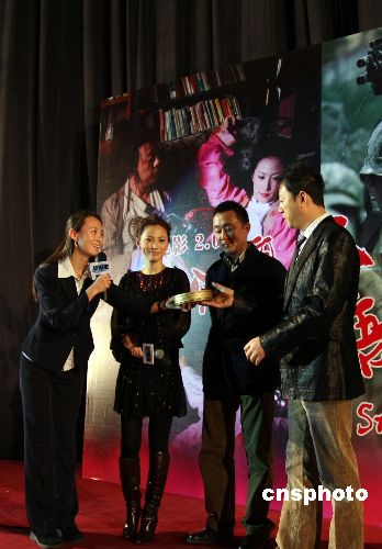 12月17日晚,《大電影2.0》在北京舉行首映式。首映結(jié)束后,該片導(dǎo)演阿甘攜郭濤等主要演員與影迷見面。12月17日正值郭濤生日,活動主辦方為郭濤準備了一份特別的生日禮物——首映式的全部入場券票根、一張觀影貴賓卡和一格《大電影2.0》的膠片。中新社發(fā) 王昊 攝