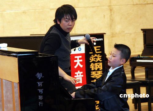12月27日,青年鋼琴演奏家郎朗在長沙參加大師班活動,與脫穎而出的24位琴童合奏一曲后,還逐個對他們進行指導。28日,他將在湖南國際會展中心舉行“快樂生活快樂購·郎朗乾坤2008新年感恩鋼琴音樂會”。中新社發 鄧霞 攝