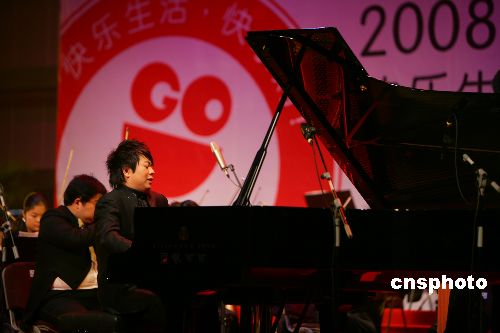 12月28日晚,青年鋼琴演奏家郎朗在長沙舉行“快樂生活快樂購·郎朗乾坤2008新年感恩鋼琴音樂會”。上半場郎朗和湖南省交響樂團合作表演了《黃河》,下半場獨奏時間里,郎朗演奏了莫扎特降B大調鋼琴奏鳴曲等世界名曲。中新社發 鄧霞 攝