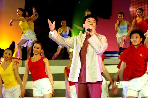 二月二十一日晚,國際巨星成龍在福建廈門放歌祝福全球華人元宵快樂。元宵之夜,與金門隔海相望的廈門會展中心的燈火璀璨,一臺名為《團圓燈火耀今宵》的大型文藝晚會將“海峽西岸鬧元宵 全球華人盼團圓”活動推向最高潮。中新社發 王東明 攝