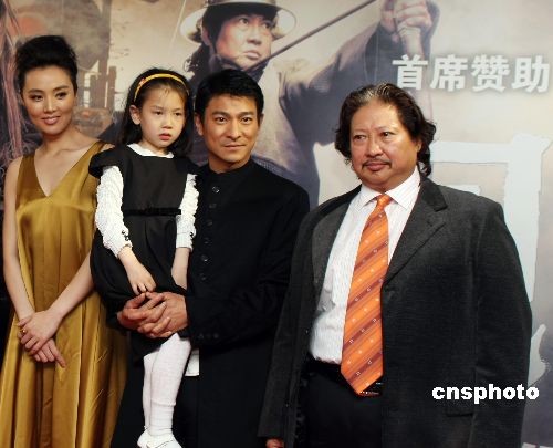 2008年4月1日,電影《三國(guó)之見(jiàn)龍卸甲》在北京新世紀(jì)影城舉辦首映見(jiàn)面會(huì)。導(dǎo)演李仁港攜演員劉德華、Maggie Q、姜宏波、濮存昕、洪金寶出席。許茹蕓、李湘、劉樺等明星到會(huì)捧場(chǎng)。中新社發(fā) 王昊(北京) 攝