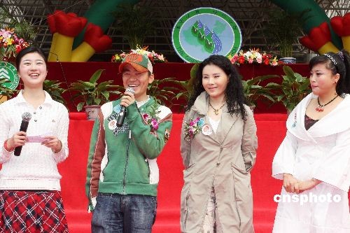 4月5日,北京迎來第二十四個義務植樹日,“微笑北京、綠色長征”首都大學生第十二屆“綠橋”暨第二屆全國青少年綠色長征接力活動在北京林業大學開幕。開幕儀式上戴玉強、張邁、王寶強等文體明星成為“第七屆首都大學生綠色形象大使”。中新社發 追影 攝