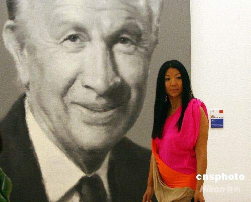正在北京美術館舉辦的“2008·第三屆中國北京國際美術雙年展”吸引民眾。該展覽有來自81個國家的747件當代繪畫和雕塑作品參展,將持續到8月12日。為迎接北京奧運會,很多作品具有奧運元素。圖為摩梭族女性、曾當過演員模特現為作家的楊二車娜姆參觀展覽。中新社發 富田 攝