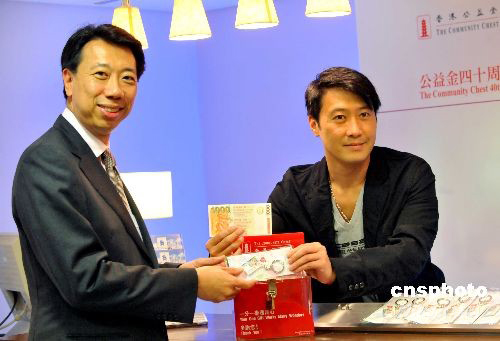八月二十七日,為慶祝香港公益金成立四十周年,公益金在香港中環(huán)區(qū)一間渣打銀行分行舉行籌款項(xiàng)目“珍藏版迷你八達(dá)通卡”開展儀式,并公布相關(guān)事宜。歌星黎明更充當(dāng)“售貨員”,并以公益金董事身份出席宣傳,呼吁市民支持活動(dòng)。中新社發(fā) 鄧慶樂 攝