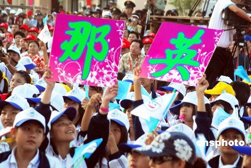 2008年11月16日,那英在第九屆中國海南島歡樂節開幕式上獻歌《征服》、《我只喜歡你》,用熟悉的旋律征服了眾多歌迷,掀起一陣快樂旋風,并引發現場觀眾大合唱。那英一身紅格子長衣至大腿,以高筒靴、黑手套、網狀絲襪,盡現個性與神秘魅力。她說在歡樂節上有自己的許多第一次——第一次到文昌,第一次參加海南歡樂節,第一次在歡樂節上獻歌,更是第一次在下午站在海邊舞臺上演唱。中新社發 善平 攝