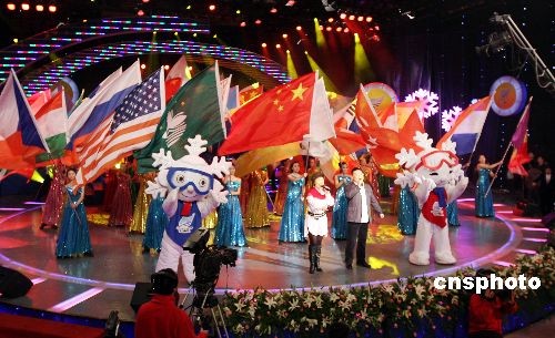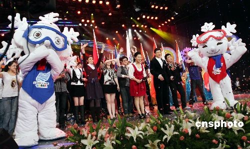 12月30日,“我們的會歌——我來唱”第24屆世界大學生冬季運動會會歌演唱者選拔賽在歷時一個月后圓滿落幕,當晚,本次比賽的頒獎晚會在黑龍江電視臺800米演播廳舉行。中新社發 姚庭山 攝