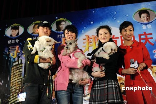 二月四日,影視藝人張一山、楊若兮、金銘、楊紫,分別攜帶雪拉瑞、比熊等名犬亮相《尋找狗托邦》首映式。當日,電影《尋找狗托邦》在北京上映。該片講述一群浪跡天涯的小狗為救其中一只受傷狗,經歷千難萬險帶它去“狗托邦”治病的故事。中新社發 廖攀 攝