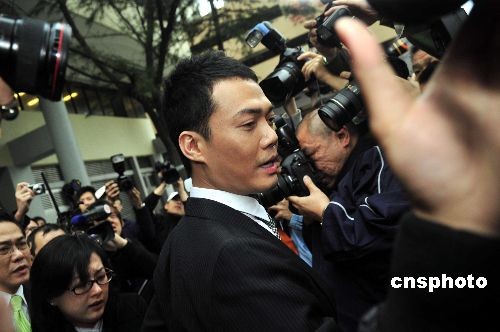 三月十一日,四十一歲的香港藝人謝天華,因酒后駕駛及不小心駕駛,被香港東區(qū)法院判監(jiān)六星期,緩刑一年,同時(shí)罰款九千五百港元及停牌一年半。圖為謝天華聽判后離開法院。中新社發(fā) 譚達(dá)明 攝