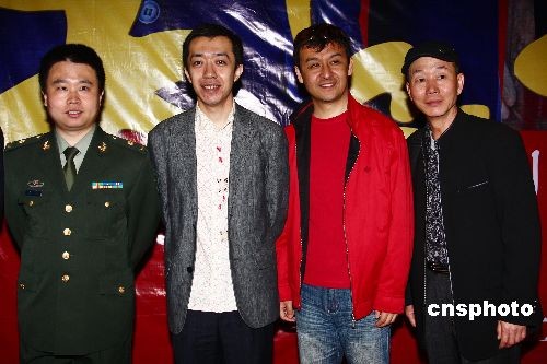4月28日,中國(guó)首部相聲喜劇電影——《天下第一串》在北京首映。該影片是一部融相聲說(shuō)、學(xué)、逗、唱等元素和中國(guó)戲劇手法于一身的喜劇電影。由以《武林外傳》的燕小六一角為廣大觀眾所熟知的肖劍、天津相聲名家趙津生、劉偉、何濤、李菁、何云偉等主演,這些演員幾乎融合了中國(guó)所有相聲派別,特點(diǎn)鮮明,喜劇味十足。圖為(左起)該片主演“燕小六”肖劍、李菁、王斌、趙津生。中新社發(fā) 李學(xué)仕 攝