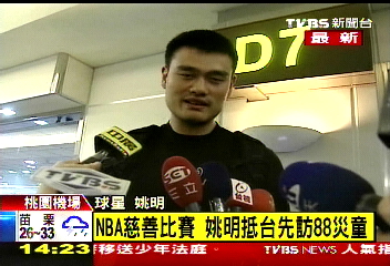 姚明這次來臺是參加“2010姚基金慈善之旅”的活動,不過一抵達臺灣,他將立刻搭乘高鐵,前往高雄和八八風災的受災戶學童見面。