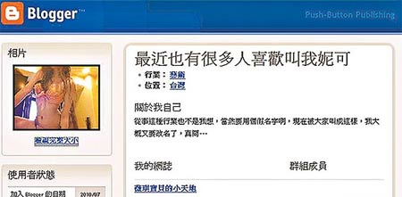 昨天更有出現冒稱應召女“妮可”的部落格《薇琪寶貝的小天地》,發文時間緊扣《壹周刊》報道陳致中召妓疑云的時間點,如7月3日指“接了個名人客人”、22日“被《壹周刊》拍”等。