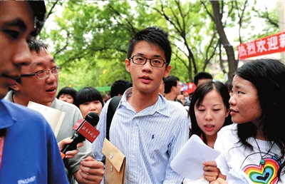 昨天上午,李戡無疑是北大今年的新生中最被關注的一個。數十名記者把李戡圍得寸步難行,對于這樣的架勢,李戡表示已經在意料之中,但是他希望從今天開始自己的生活可以恢復平靜。