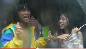 影片一開始,出現一名戴著假發,穿著透明雨衣,裸上半身只穿四角褲的男大學生,當起記者來,夸張地演出被強風吹倒在地,不但藍色雨傘開了花,整個人還翻了過去。接著竟然SNG連線起來。