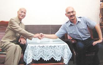 中新網9月21日電 據臺灣《聯合報》報道,桃園市民代表會職員李彥霆留著胡須,理個大光頭,朋友形容他很像年輕時的蔣介石,連住花蓮、常扮演蔣介石的李登科都去找他合照。