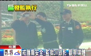 為了陳水扁的安全,北監(jiān)立刻研擬如何防范,北監(jiān)人員就在陳水扁會(huì)客必經(jīng)的從善大道前,東指西指,不時(shí)還蹲下查看測(cè)量,最后還發(fā)現(xiàn)媒體就在對(duì)面。不過(guò)這一次和去年陳水扁在臺(tái)北看守所放風(fēng)運(yùn)動(dòng)不一樣,北監(jiān)人員直接拿出DV觀察。