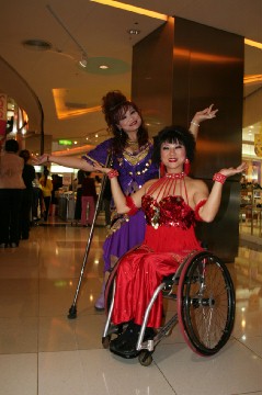 據(jù)臺灣《聯(lián)合報》報道,第三屆大江杯中東肚皮舞蹈大賽昨天在桃園縣中壢市舉辦,十五支參賽隊伍中,以“輪飛拐舞”最受矚目。四十歲的林秀霞是輪椅國際標(biāo)準(zhǔn)舞高手,曾獲輪標(biāo)舞世界冠軍;四十二歲的劉麗紅則是島內(nèi)第四十三屆“十大杰出青年”、廣播節(jié)目主持人。