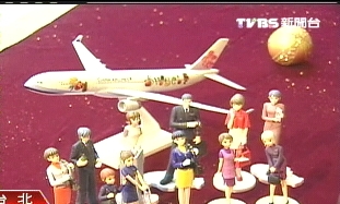 遠(yuǎn)航的公仔則穿上圓點(diǎn)圍裙,親和力十足。島內(nèi)航空公司紛紛推出空姐公仔,賣(mài)的不只是航空公司的形象。華航人士說(shuō):“我們一個(gè)款式是1萬(wàn)個(gè),所以有4個(gè)款式,一共出4萬(wàn)個(gè),每?jī)煽钍琴u(mài)20元美金!