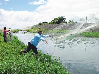 中新網6月16日電 臺灣花蓮市阿美族12個部落原住民昨天聯合舉辦捕魚節暨海祭活動,除傳統祭儀外,各部落派員在七腳川溪出?谶M行撒網捕魚比賽,并享受鮮魚美味大餐,得到撒網賽冠軍的吉寶干部落,還破例開放女性參加陸上撒網趣味活動,體驗先人捕魚文化。