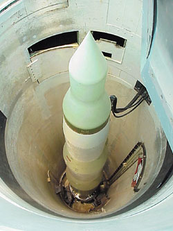 義勇兵洲際彈道導(dǎo)彈,曾是冷戰(zhàn)時(shí)期美國的重要嚇阻力量。2006年8月,美國國防后勤局誤將4具這種導(dǎo)彈的鼻錐引信總成當(dāng)成直升機(jī)蓄電池送至臺灣。(美聯(lián)社圖)