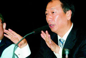 而對于股價一度跌到52.5元,郭臺銘表示,過去外資占6 成,最高達63%,去年遭逢金融危機,救自己的基金,這足底長期持有者,如保險公司、退休、管理者一定要賣股救公司。但換一個角度,不是壞事,因為當好時,會回來;因為有難時,要賣可賣,不像一些小公司,賣都賣不掉。郭臺銘表示,近日許多基金經理人告訴我,過去一年以來,可賣得掉,若未來回來,鴻海是必選股票之一。