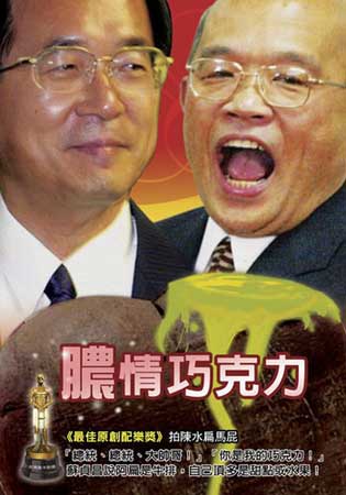 臺“全民麻辣鍋”網(wǎng)站最近開設了“2005至2007臺灣奧卡斯獎——民進黨執(zhí)政之荒謬劇場”票選活動,以反諷、笑中帶淚的方式為民進黨“執(zhí)政”頒獎。民進黨4大天王及扁妻皆成為臺灣民眾惡搞對象,通通上榜,并奪得各項大獎。