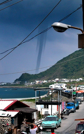 臺(tái)東蘭嶼附近海域,7月底出現(xiàn)水龍卷,如圖一條巨大水柱直沖天際景象壯觀,水龍卷從蘭嶼機(jī)場(chǎng)往漁人部落移動(dòng),八分鐘后消失。記者陳明成/攝影