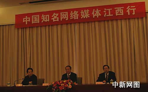 江西省委書記蘇榮在記者見面會上。