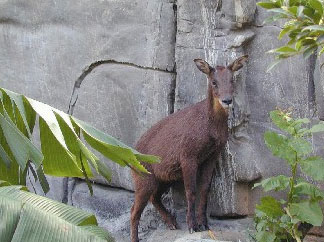臺灣長鬃山羊為臺灣特有種。它們主要分布在臺灣山區(qū),烏來延伸至中央山脈仍可看到它們的蹤影。其外形為深褐色,喉部為黃色,硬蹄分泌蹄脂腺,有助于攀爬山巖,并牢牢地踩在石縫之間,因此喜在懸崖附近活動,奔跑速度快,若受外力入侵,它們還會以頭上一對向后彎曲的洞角頂人自衛(wèi);平時吃桑葉、鹿構樹葉、三黃麻等枝葉、胡蘿卜等。