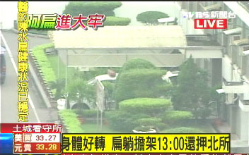中新網(wǎng)11月19日電 據(jù)臺灣TVBS報道,健康情形好轉(zhuǎn)的陳水扁在戒護送醫(yī)告一段落后,于19日下午1點還押臺北看守所。陳水扁最新病容也在媒體前曝光,與送醫(yī)時相比,頭發(fā)整齊神情平靜。