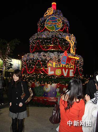 平安夜,臺北市的年輕人在愛情燈邊表愛意。 作 者:陳立宇