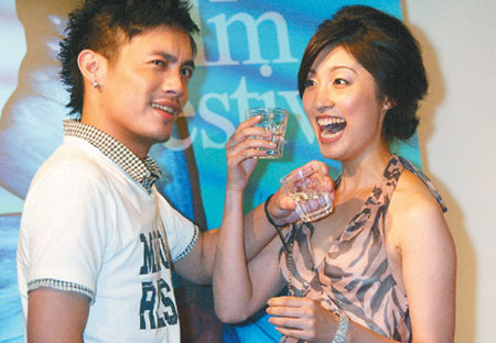 范逸臣、田中千繪要以臺灣少數民族民方式喝酒,卻變成喝交杯酒。
