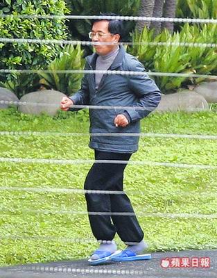 陳水扁進入花圃后,先深深地吸了一口空氣,簡單熱身后,就繞著花圃圓形水泥地,逆時針慢跑起來。為了避免發生意外,三名管理人員眼睛沒離開過他,不敢有絲毫放松,其中一人還全程拿著DV錄像。