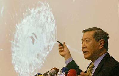 李昌鈺博士在離臺前的記者會上公布所采集的槍擊現場相關鑒識報告中指出:證據顯示陳水扁的傷口含有鉛微粒的成份及車窗的彈孔確實是從外向內射擊造成的。