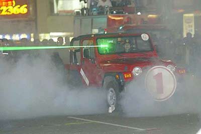 李昌鈺博士赴臺(tái)南市金華路槍擊現(xiàn)場(chǎng),進(jìn)行雷射彈道比對(duì)及兇手開(kāi)槍位置等現(xiàn)場(chǎng)勘查,過(guò)程中以最新雷射儀器測(cè)試彈道射出情形,現(xiàn)場(chǎng)并施放人造煙霧,施放煙霧的主要目的,是為了使光束較容易標(biāo)定。
