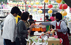 搭乘“海洋迎風號”郵輪抵臺觀光旅游的近七百位大陸觀光客12日暢游高雄縣佛光山,年輕的觀光客采購小沙彌公仔。