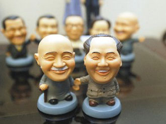 中新網10月27日電 兩岸交流進一步加強,國民黨黨史館與廠商合作訂制兩岸人物公仔,其中以蔣介石與毛澤東公仔銷售熱度最驚人,第一版已熱銷一空,正趕制第二版。
