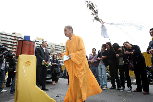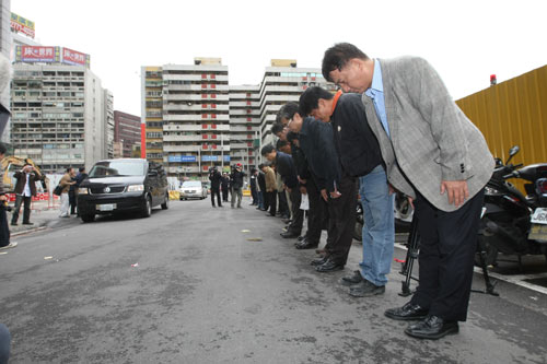 據“中央社”報道,李福慶和王炳坤的妻兒親屬在事故現場分別舉行招魂儀式,家屬以廣東話呼喊罹難者的名字,悲傷得幾乎無法站立。肇事營造商代表則在一旁,一字排開鞠躬致歉。
