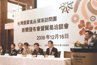 中新網(wǎng)12月17日電 據(jù)臺灣《聯(lián)合報》報道,臺北世界貿(mào)易中心總經(jīng)理劉錫威興奮指出,“我們是兩岸大三通后,第一個率領(lǐng)貿(mào)易訪問團(tuán)參訪大陸的團(tuán)體”,此次臺灣貿(mào)協(xié)所率領(lǐng)的“臺灣優(yōu)質(zhì)食品貿(mào)易訪問團(tuán)”,其12家臺灣食品制造商,保證是臺灣最優(yōu)質(zhì),絕對讓大陸民眾吃得安心的臺灣食品。