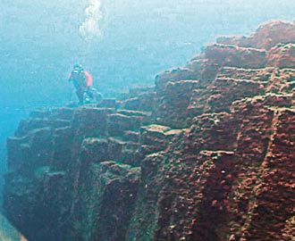 中新網(wǎng)1月4日電 據(jù)臺灣《聯(lián)合報》報道,在澎湖北方海域的大磽嶼海底有一處開口朝西北、呈微笑狀的柱狀玄武巖,長度達(dá)200公尺,高約10公尺,每枝石柱的直徑約1公尺,節(jié)理明顯宛如“海底城墻”。