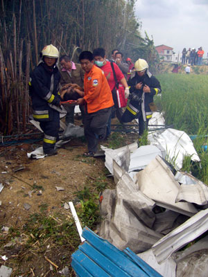 消防人員冒著大火到火場(chǎng)內(nèi)灌救,火場(chǎng)不斷傳出小型爆炸,十分嚇人,而現(xiàn)場(chǎng)馬路上都布滿工廠飛出的鐵皮與鋼架,連附近民家玻璃屋頂都震破得十分嚴(yán)重,滿目所見(jiàn)都是殘破現(xiàn)象,還有一位傷者震飛到三十多米的稻田草叢中,是被到場(chǎng)記者聽(tīng)到哀嚎聲才通報(bào)搶救,現(xiàn)場(chǎng)慘不忍睹。
