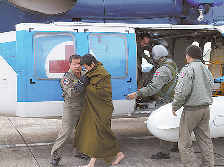 海鷗救護隊指出,清晨近六時曙光露出,才看到多人載浮載沉,救護人員以吊籃將他們吊上直升機。