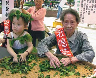 102歲茶農楊許好從花蓮趕來示范揉茶,他前一陣子排尿不順,開始每天喝茶3杯,排尿不順的癥狀就改善許多。與楊許好一同示范揉茶還有4歲女童江宜庭,她從2歲就喝茶,經常與母對飲,樂在其中。