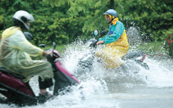 臺灣北部昨天午后雷陣雨也來勢洶洶,從桃園縣到臺北縣市均發(fā)生每小時超過50毫米的“時雨暴”,桃園縣大溪當(dāng)日下午一時到二時降雨達68.5毫米;臺北當(dāng)日中午十二時到下午一時也出現(xiàn)54毫米“時雨暴”,部分街道積水不退。