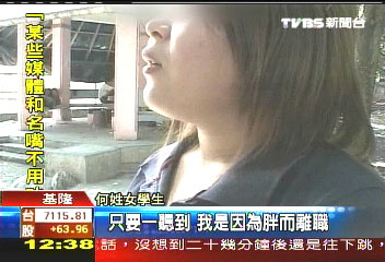 她說:“因為身材而離職,我覺得很難過,因為我工作態(tài)度,我覺得我很認真。”她還說:“很受傷,比失戀還要受傷,只要一聽到我是因為胖而離職,我就會哭。”